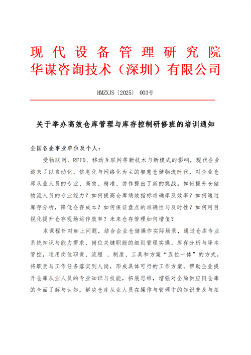 關(guān)于舉行高效倉庫管理與庫存控制研修班的培訓(xùn)通知