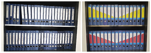 以科室為單位,科主任帶頭,全員參與,按照6S管理的思想,清理不要物,規(guī)范必須物品的定點(diǎn)、定容、定量。進(jìn)而實(shí)現(xiàn)目視化管理,提高工作效率。