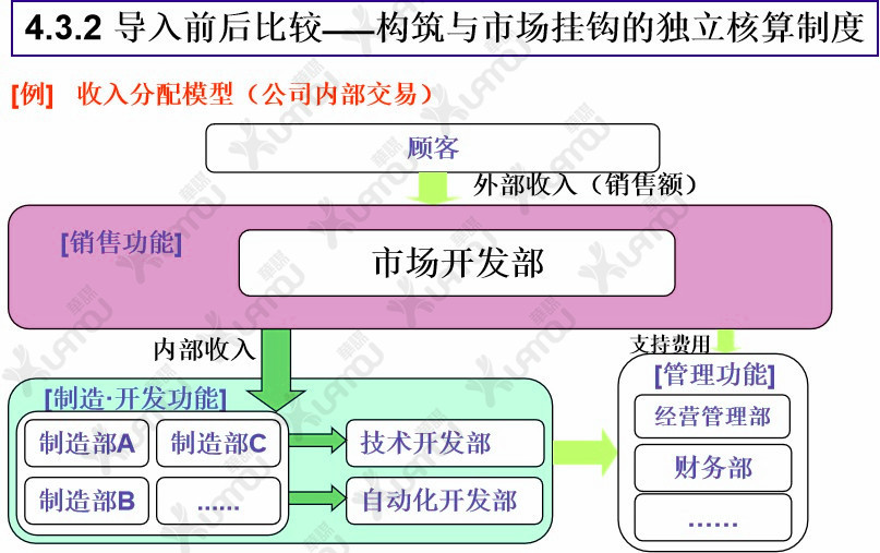 確立與市場掛鉤的部門核算制度公司經(jīng)營的原理和原則是“追求銷售額最大化和經(jīng)費最小化”,把組織劃分成小的單元,采取能夠及時應(yīng)對市場變化的部門核算管理。 -